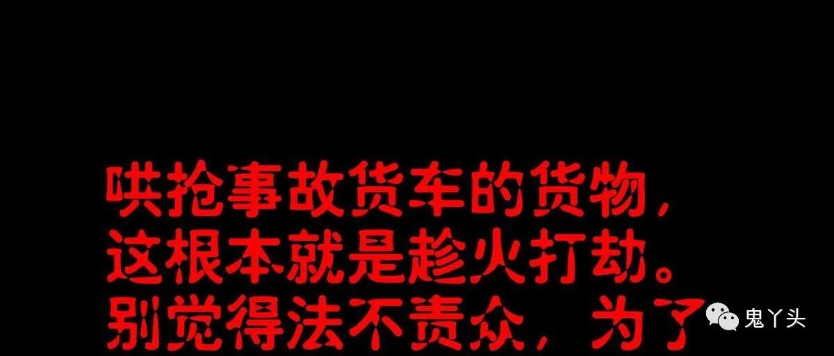 哄抢事故货车的货物这根本就是趁火打劫。别觉得法不责众,为了小便宜就大肆掠夺。子夜来敲门之《哄抢》