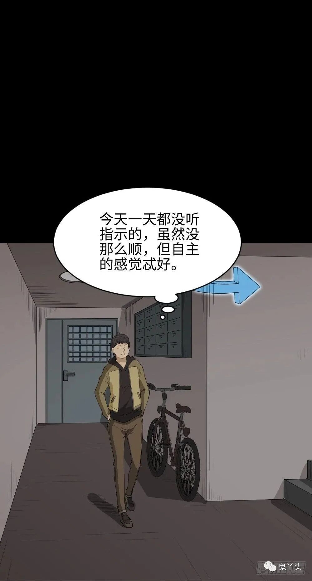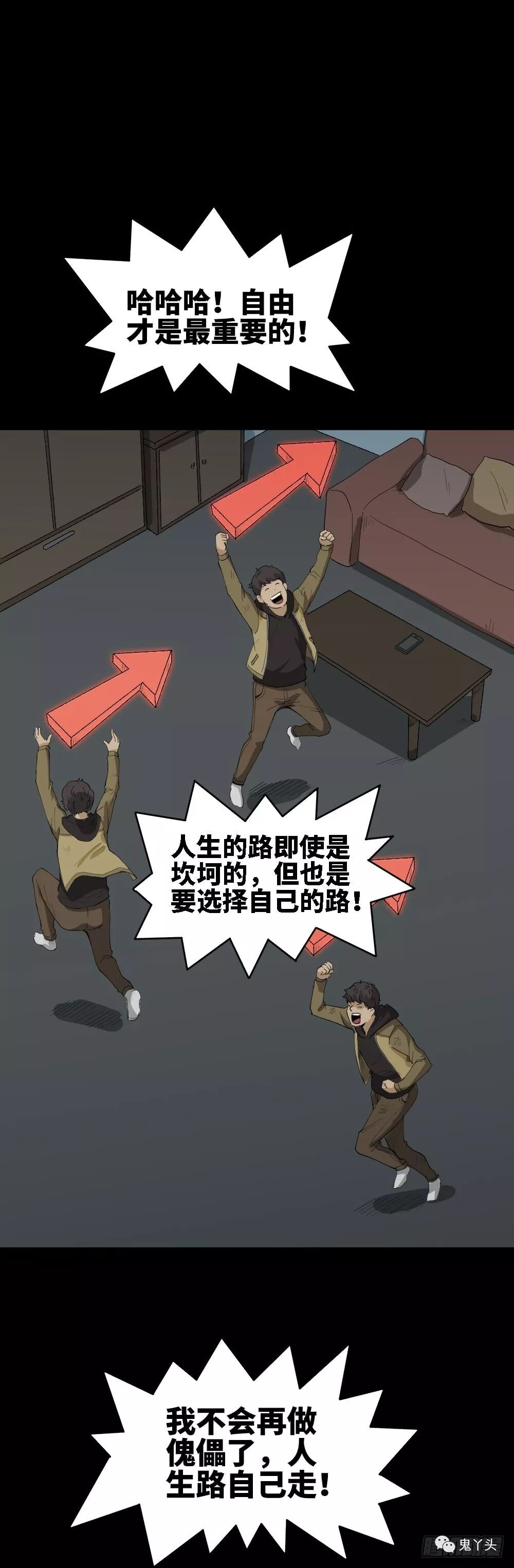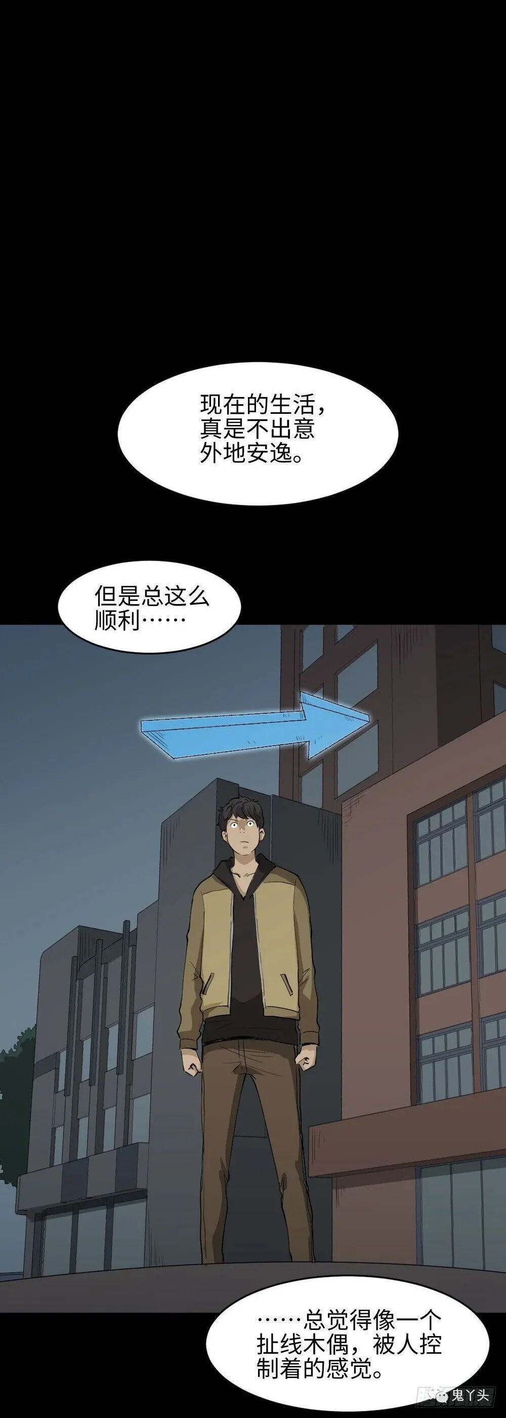 主角头上有个指引方向的标记,一直按标记做事总很顺利,却感觉像被操控的木偶。后来他故意不听指示,虽然波折不断,但觉得很自由。结局反转——他其实是游戏角色,所谓“自己选路”,也只是换了个玩家操控而已。
