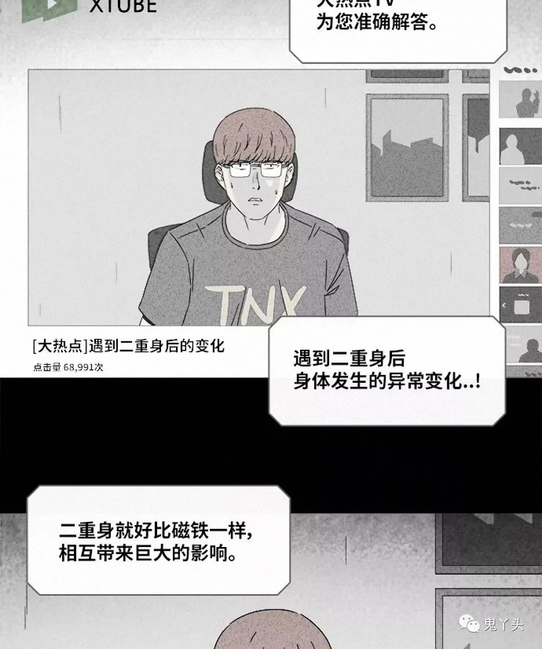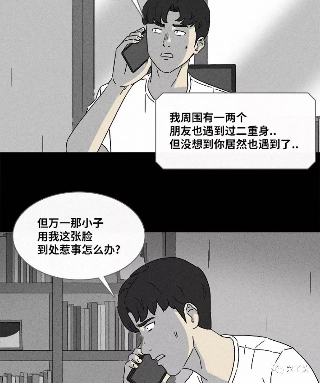 奇奇怪怪之《黑雾》 在黑雾没散的时候只有另一个逝世了才能解除这种互相控制的状态,很明显男主在开车的时候受到坐在家里的二重身影响后逝世了。 结尾有些马虎了,希望会有后续 二重身是一种心理学现象,指一个人在现实生活中自己看见自己。心理学家将二重身