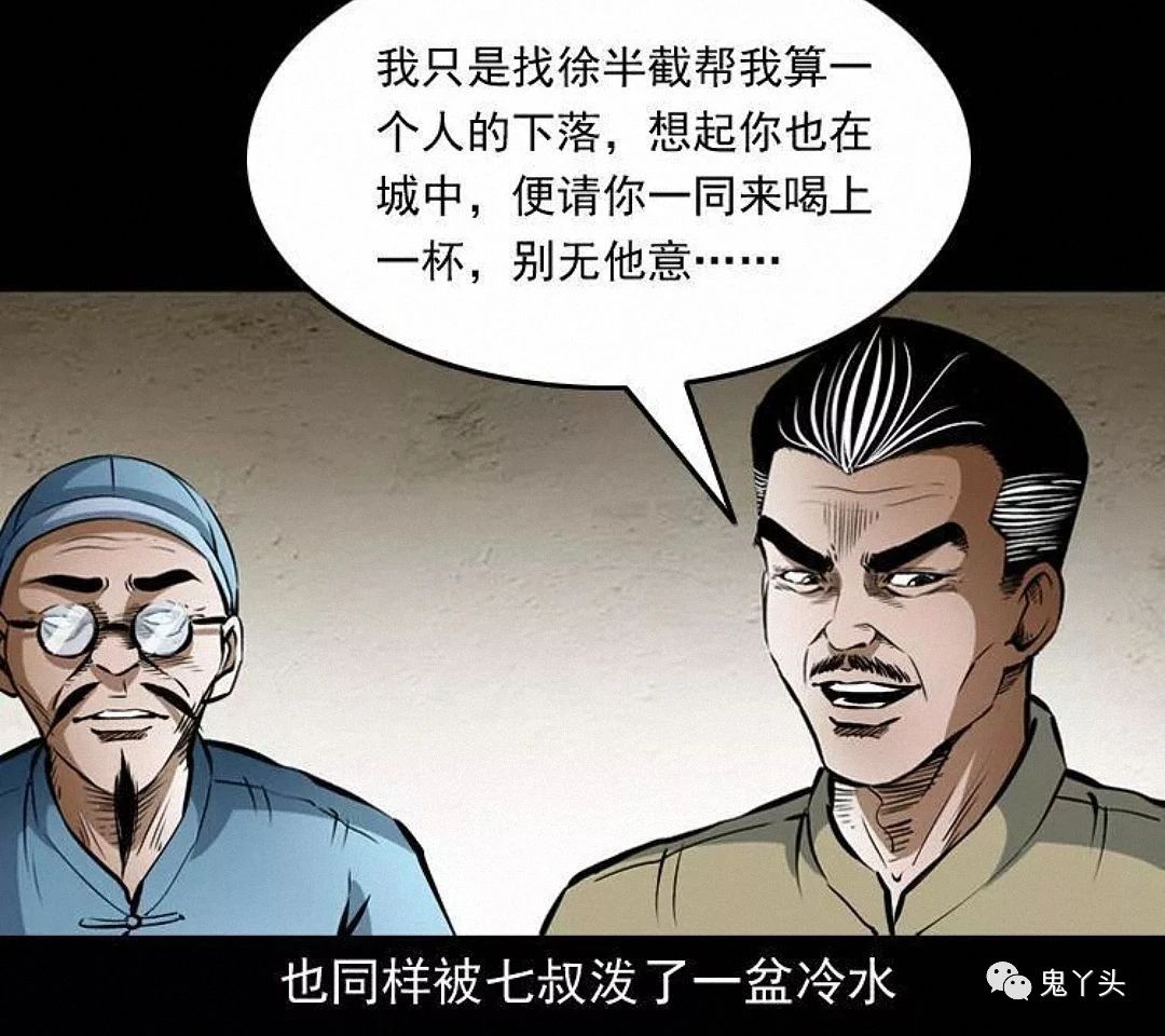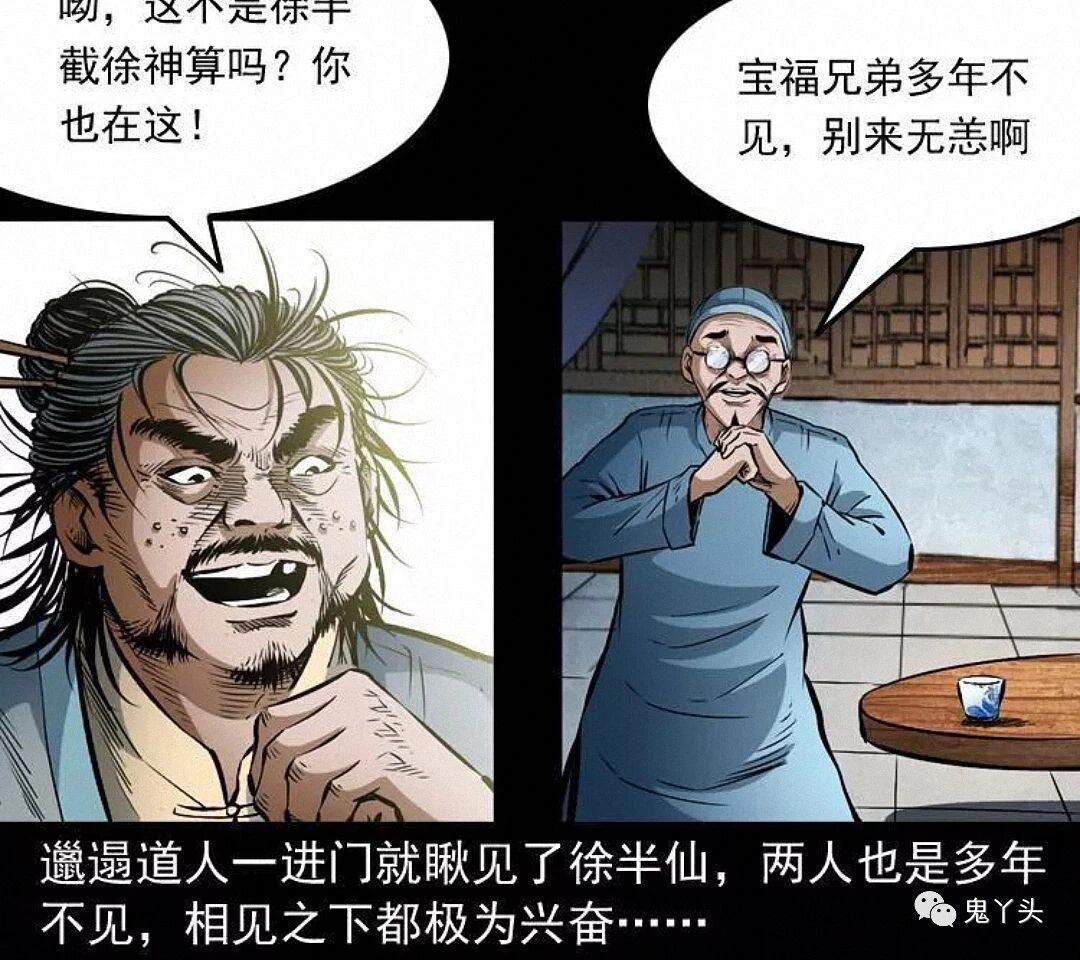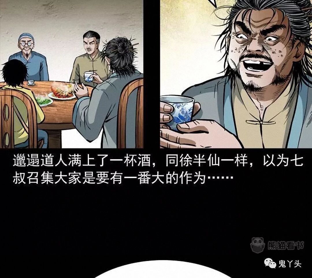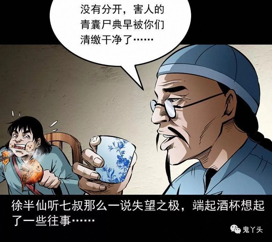 七叔好像怕徐半仙说漏了什么,把他拉到了一边,徐半仙一番莫名其妙的话,听得小江和马四海摸不着头脑,又听七叔叫徐半仙为徐半截,觉得这名字挺有趣,兄弟二人便猜测了起来,这徐半仙是七叔早年的至交,也是多年不见,至于徐半截的由来,只是他的另一个绰号,只因他能洞晓天机,却又不敢说破,每次只说半截话才落了这么一个江湖绰号,七叔说明是为了青囊尸典而来,提到青囊尸典徐半仙不由得脸色一变,七叔觉得街上吵闹,就请徐半仙到僻静之处相谈……