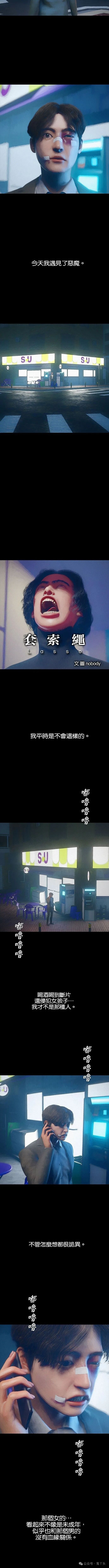 人间无恶魔之《套索绳》黑衣人最后坐在公司念着跟朋友一样的台词,因为本来就是黑衣的日常,朋友只是演出剧本。朋友讲电话时画面始终是首页而不是通话画面,而且还带入两次,这里已经透漏并没在跟任何人通话。所以朋友死后为什么黑衣人可以当老板&拥有店家?